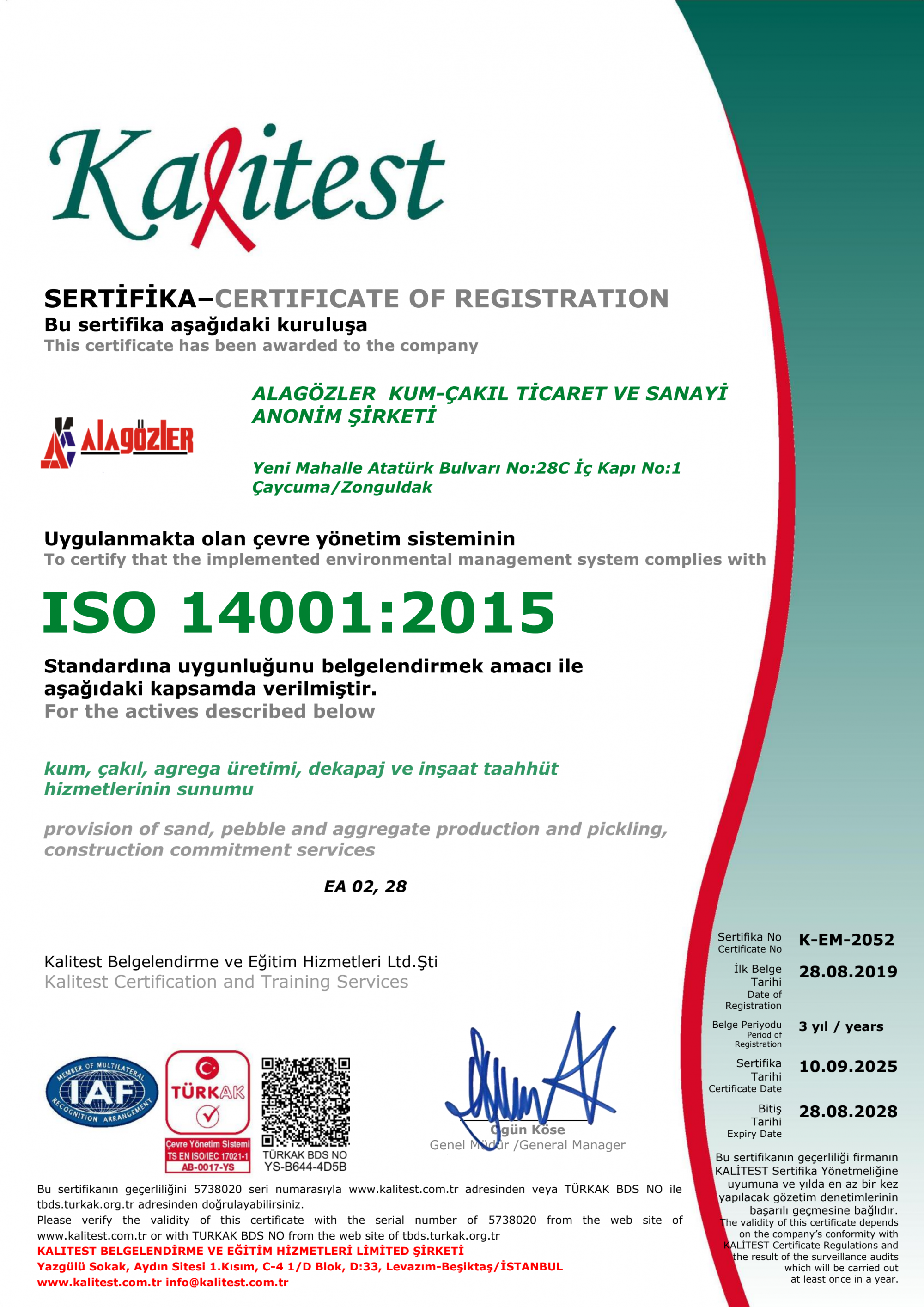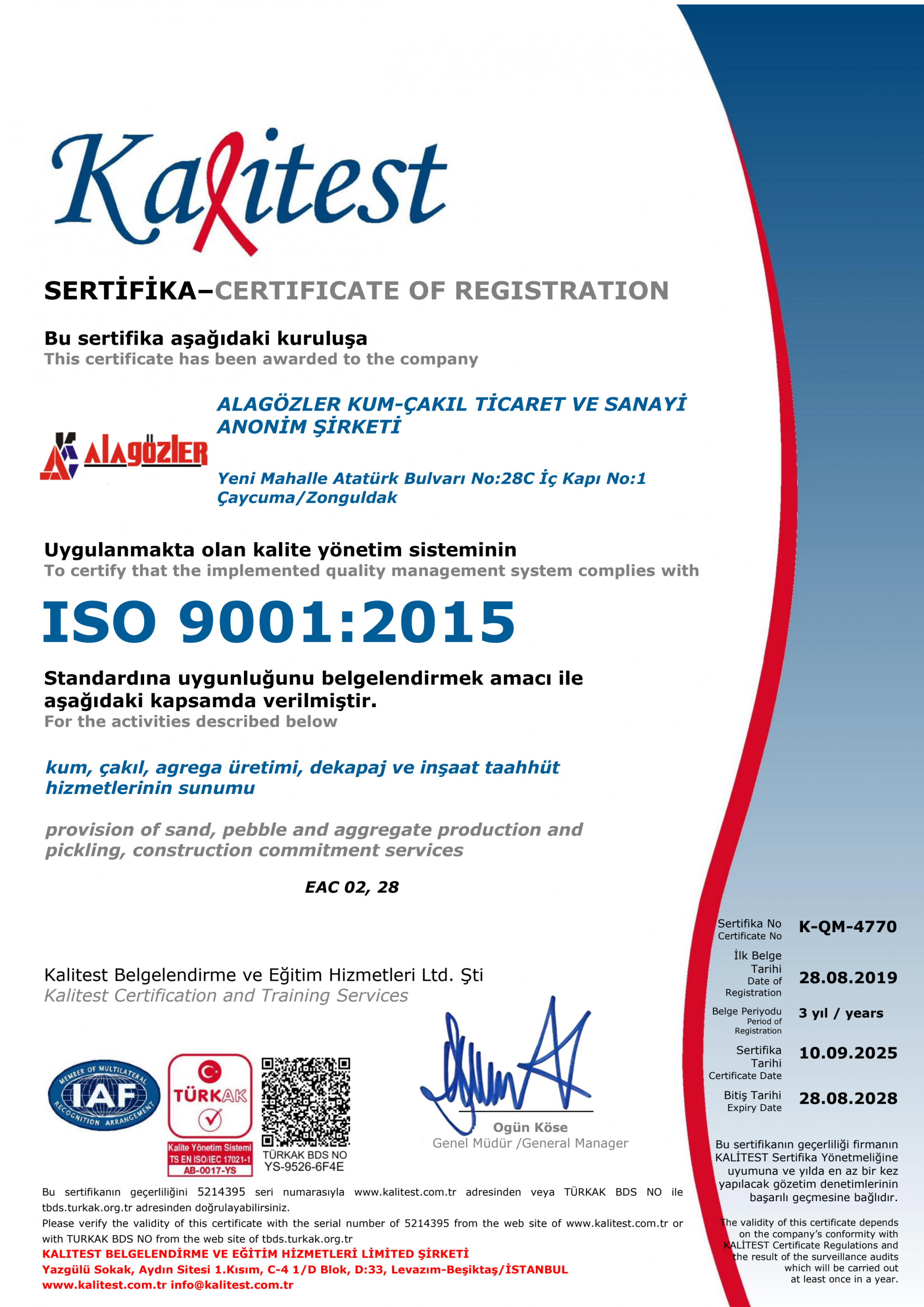 KALİTE YÖNETİM SİSTEM BELGESİ